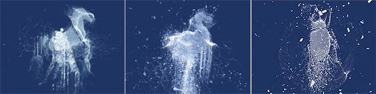 이번 전시에는 몇백년 전에 멸종된 도도새나 경계의 벽을 뚫고 지나가는 인간의 모습을 형상화한 다양한 모습이 등장한다. 3대의 영상장치에서 나오는 이미지가 여러 형태로 변화되며 전시장 벽면을 가득 채운다.