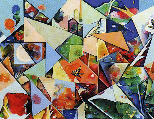 화면의 바탕은 삼각과 사 각의 파편들이 무질서하게 배열된 듯 보이지만, 그 사이로 꽃과 바람, 집, 사람 등이 조각보처럼 촘촘히 얽혀져 있다. 대다수의 작품이 언뜻 보면 비슷한 것 같으나 나비의 수와 위치가 각각 다르게 배치돼 있다. 나비를 통해 인간과 자연과의 조화를 표현하고 있다.