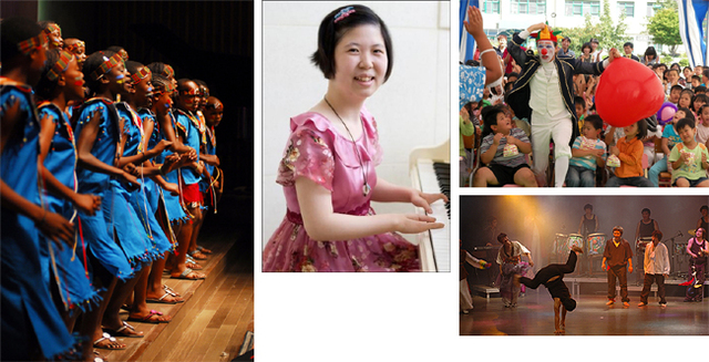 케냐 자라니 합창단, 이희아양, 마임니스트 최경식씨, 전주전통문화센터 '학벽예술단'(왼쪽부터 시계방향) (desk@jjan.kr)