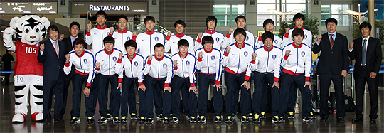 조광래(56) 감독이 이끄는 대표팀은 26일 오후 인천공항을 통해 아랍에미리트(UAE) 아부다비로 출국했다. 이날 비행기에 탑승한 태극전사는 총 17명으로 박지성(맨체스터 유나이티드), 이청용(볼턴), 기성용, 차두리(이상 셀틱), 이정수(알 사드), 이영표(알 힐랄) 등 해외파 6명은 아부다비 현지로 직접 합류할 예정이다.