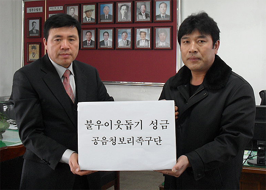 고창군 공음면청보리족구단(단장 최영)은 불우이웃돕기 일일주점을 열어 얻어진 수익금 869만원 전액을 27일 공음면사무소에 기탁했다. 공음면사무소는 기탁한 성금으로 농산물 상품권과 생필품 등을 구입, 구암마을 외 44개 마을의 어려운 이웃 1명씩을 선정, 전달했다.