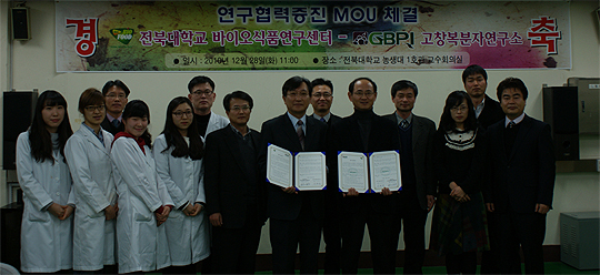 (재)고창복분자연구소(소장 이헌상)와 전북대학교 바이오식품연구센터(소장 정용섭)가 복분자의 새로운 도약을 위한 상호협력관계 구축을 위한 협약식을 28일 전북대에서 가졌다.
