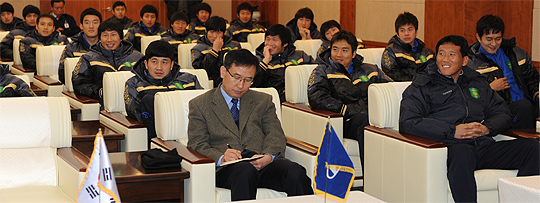 이철근 단장을 비롯해 최강희 감독, 김상식·이동국 선수 등 선수단 전원과 사무국 직원 등 50여 명이 참석한 가운데 진행된 이날 특강은 동계 전훈을 앞두고 올 시즌 우승을 향한 목표의식을 높이는데 주안점을 뒀다.