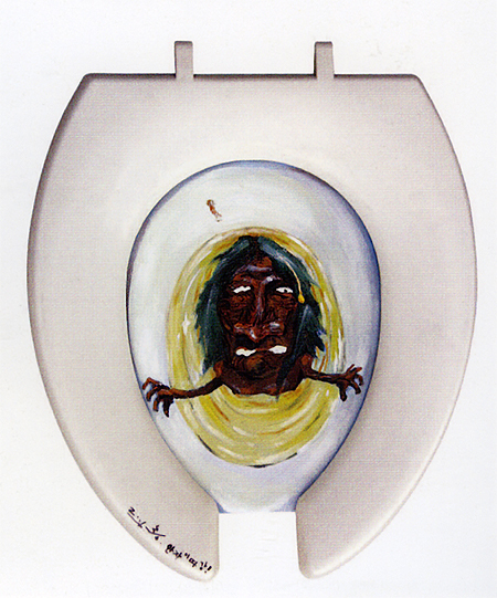 나의 자화상에는 변기, 오물 등 지저분한 것들이 등장한다. 그 속에 나는 '썩소'를 날리면서 얄궂게 웃고 있다. 악동 같은 이미지, 그게 바로 나다. 기자들이 하는 단골 질문 중 하나가 "자화상에 늘 왜 지저분한 것들이 등장하느냐"다. 그럴 때마다 이렇게 대답한다. 누구나 자신이 감추고 싶은 부분이 있게 마련이라고. 하지만 나는 그걸 외면한다고 해서 없어지는 게 아니라고 본다. 버려지는 나도 나고, 그 안에 있는 나도 나다. 내 작품을 보면서 사람들은 인상을 찌푸릴까, 웃을까 그런 생각은 하지 않는다. 다만 버려지는 나에 대해 한번쯤 생각해보자는 취지다.
