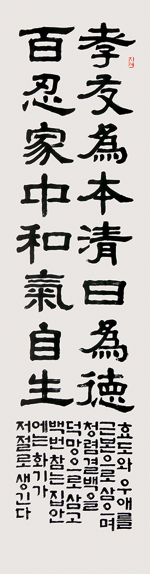 많은 작품에서 한문에 한글이 병기된 것은 전시장을 찾는 한문을 잘 모르는 젊은 사람들이 교훈적인 내용을 그냥 지나치지 말고 가슴에 새기라는 배려에서다.