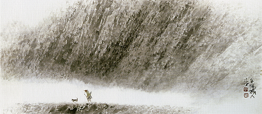 자연을 소재로 한 담백한 필치의 50여 점을 선보인다. 짧게 끊어 치는 붓의 터치나 붓끝으로 튀어 오르는 파편 같은 먹물은 때론 대담하고 거칠지만 그렇게 탄생한 한 폭의 산수는 놀랍게도 조용하고 담백하다. 잔잔한 산봉우리들 사이로 안개가 미풍에 흘러가는 모습을 형상화한 작품, 한적한 시골 풍경 등을 통해 전통을 현대로 이어내린 대가의 풍모를 느낄 수 있다.