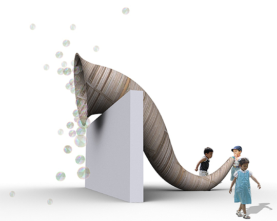 강이연씨의 'warmth'는 관람객이 다가가면 빛을 발하고, 이재길씨의 작품 '동심의 소리'의 경우 거대한 나팔관에 손을 갖다 대면 비눗방울이 나온다.