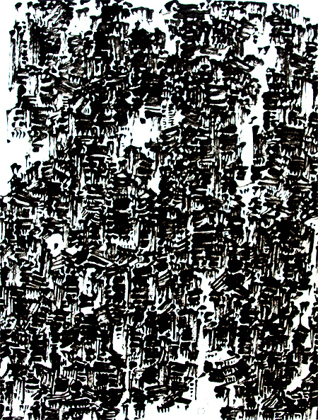 주로 그린 검은 수묵 숲은 인간이 도시에서 하루하루 바쁘게 살아가는 우리네 자화상이다. 작가는 그 도시속에서 인간의 원형을 발견하고 있다. 수묵의 반복은 인간의 깊은 사유를 묵직하게 보여주고, 원근감을 생략해 초현실적인 분위기를 연출한다.