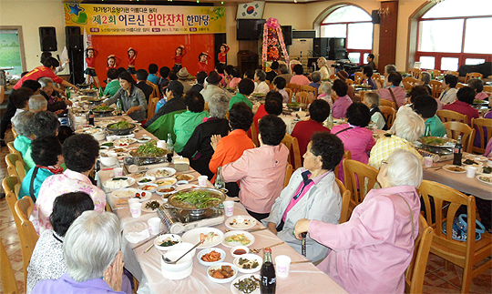 이날 행사에서는 점심을 대접하고 아이들의 무용공연·풍물·장기자랑 등으로 노인들이 시름을 잊고 흥겨운 시간을 갖도록 했다. 또 참석자에게 그릇세트를 선물로 전달했다.
