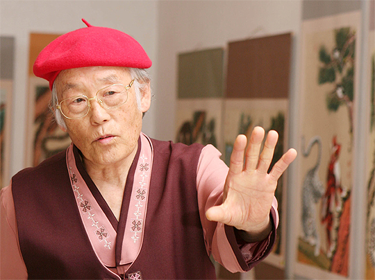 2년 전 민화 전공자 딸의 권유로 배우기 시작해 까치 호랑이를 소재로 한 민화전(19일까지 전북예술회관)까지 열고 있다.