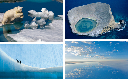 노르웨이 스발바르 군도의 북극곰. 얼음 없는 암반 해안에 서 있는 곰의 모습이 위태위태하다. 지구 온난화로 북극의 부빙(浮氷)이 곰의 무게를 견딜 수 없을 만큼 약해졌다. 펭귄이 자취를 감출 날도 머지 않아 보인다.