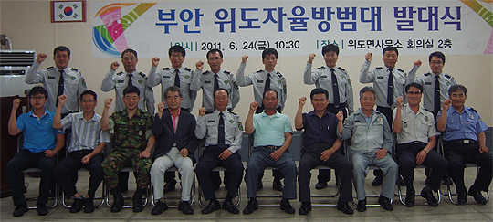 부안군 위도면 주민들이 자율적으로 구성한 위도 자율방범대(대장 정기동)가 지난 24일 위도면사무소 회의실에서 발대식을 갖고 본격적인 활동에 들어갔다.