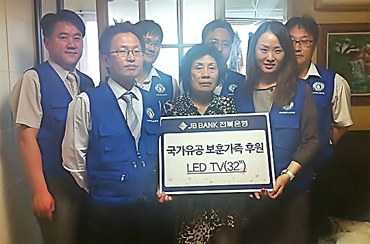 전북은행 지역사랑봉사단 영업기획부봉사단은 호국·보훈의 달을 기념해 지난 27일 전주시 진북동의 국가유공자 가정을 방문해 대청소를 실시하고 TV 등 가전제품을 지원했다.