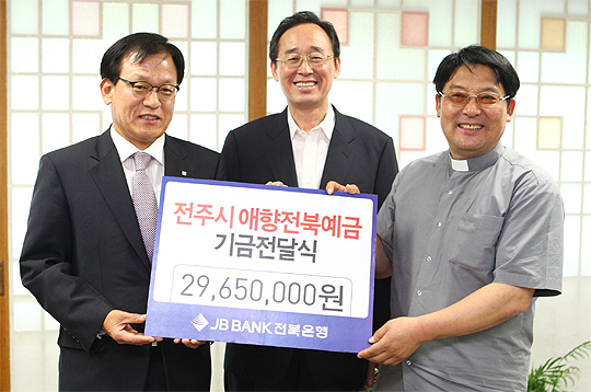 이날 전달된 애향전북예금 적립기금은 전북은행이 지역발전을 위한 동반자로서의 역할 수행을 위해 전주시에 공익사업 후원기금이다.