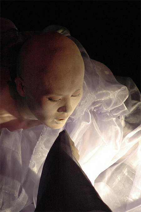 지난 9일 오후 제10회 하소백련축제 개막식이 열린 김제 청운사경 내 특설무대에서 부토 무용가 서승아씨(46)가 '연인동화'란 퍼포면스를 통해 혼이 실린 연기를 선보여 많은 관람객들의 심금을 울렸다.