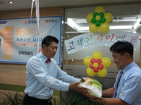 이 기간 호성동지점은 객장에 다과와 음료을 준비해 고객들에게 제공하는 한편 은행 장기저축 상품 가입시 깜짝 선물도 증정했다.