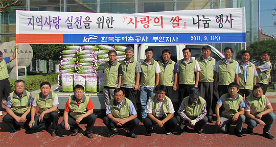 한국농어촌공사 부안지사(지사장 김영길) 사랑봉사단은 추석명절을 앞두고 1일 소외된 이웃과 복지시설을 위해 사랑의 쌀 106포대를 기부했다.