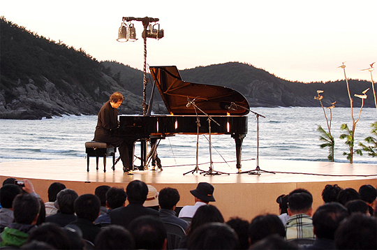 건반 위의 구도자 백건우씨가 부안 위도해수욕장 야외무대에서 펼쳐낸'섬마을 콘서트'가 지난 21일 막을 내렸다.