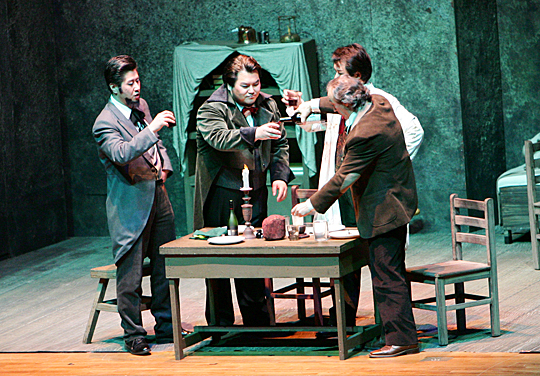 마르첼로에는 호남오페라단의 간판 스타 김동식 장성일, 콜리네역에는 이대혁, 쇼나르역에는 박영환이 오른다. 1막 방안의 어둠과 대조를 이루는 2막의 찬란함, 미미가 죽는 4막의 따뜻하면서도 처연한 느낌은 조명을 통해 극 전체의 분위기를 효과적으로 전달하도록 신경썼다. 조승철 극단하늘 대표가 연출을, 이일구 호남오페라단 상임지휘를 맡는다. 오케스트라는 그랜드 심포니 오케스트라, 합창은 전주시립합창단· CBS 소년 소녀 합창단.