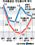 한국은행은 6일 ‘2011년 3분기 국민소득(잠정)’ 보도자료에서 올해 3분기 실질 국내총생산(GDP)이 전년 같은 기간보다 3.5% 성장했다고 밝혔다. 지난 2분기 3.4%에 이어 두 분기 연속 3%대 성장에 그친 것이다. 3분기 경제는 내수 부문의 성장속도 둔화가 두드러졌다.