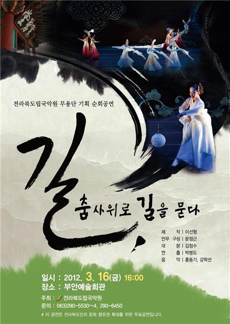 도립국악원 무용단이 16일 오후 4시 부안예술회관 대공연장에서 '길, 춤사위로 길을 묻다'무료공연을 갖는다.