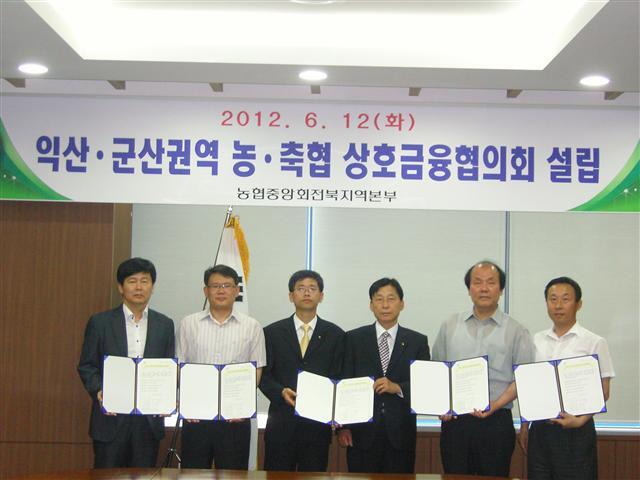 전북농협(본부장 강종수)은 12일 익산 및 군산지역에 기반을 두고 있는 6개 지역농·축협이 고객과 조합원에게 보다 나은 상호금융 서비스 제공을 위한 '익산·군산권역 상호금융 협의회'를 군산농협 회의실에서 발족했다. 협의회에는 군산농협, 익산농협, 군산원예농협, 익산원예농협, 익산군산축협, 동진강낙농축협 6개의 농축협이 참여했고, 초대회장에는 군산농협 공양연 상무가 선출됐다. 사진제공=전북농협