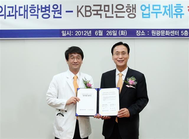 KB국민은행(은행장 민병덕)과 원광대학교의과대학병원(병원장 정은택)은 26일 익산시 신용동 소재 원광문화센터에서 포괄적인 업무제휴 협약을 체결했다.