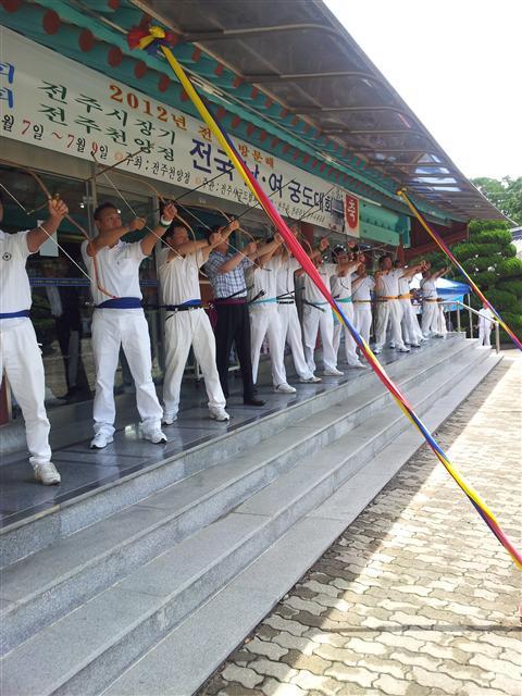 전주천양정에서 지난 7일 시작돼 9일까지 계속되는 이번 대회에는 노년부 265명, 장년부 899명, 여자부 159명, 실업부 76명, 단체전 700명 등 전국 2099명의 궁도인들이 참가해 자웅을 겨룬다.