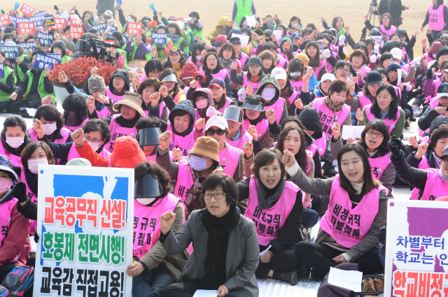 이에 앞서 전북 학교비정규직연대회의(연대회의)는 이날 오전 10시 도교육청 앞 광장에서 호봉제 전환 등 처우개선을 요구하는 집회를 가졌다.