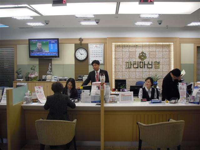 ▲ 전주 파티마 신협 창구 직원들이 고객과 상담하고 있다.