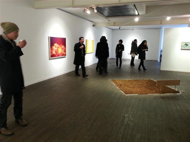 지난 22일 오후 5시30분 전주교동아트미술관(대표 김완순)의 첫 기획초대전'미술가에게 길을 묻다'. 전주교동아트센터가 전주교동아트미술관으로 변신한 것을 기념해 열리는 첫 기획초대전을 축하하러 온 미술가들이 눈에 많이 띄었다. 이번 기획전이 이 지역에 뿌리를 둔 45~55세 중진 작가 16명을 선별한 것을 두고 이문수 전주교동아트미술관 큐레이터는 "4대 보험에도 가입이 안 되는 그러나 전업 작가로서 열심히 사는 지역의 중진 미술인들을 조명하기 위한 자리"라고 의미를 부여했다.