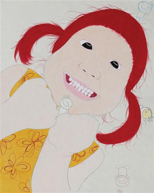 그동안 어린아이를 중심에 두고 작품 활동을 해왔던 서양화가 최수영씨(40)가 '유치뽕'전을 열고 있다(15일까지 전북도청 기획전시실).