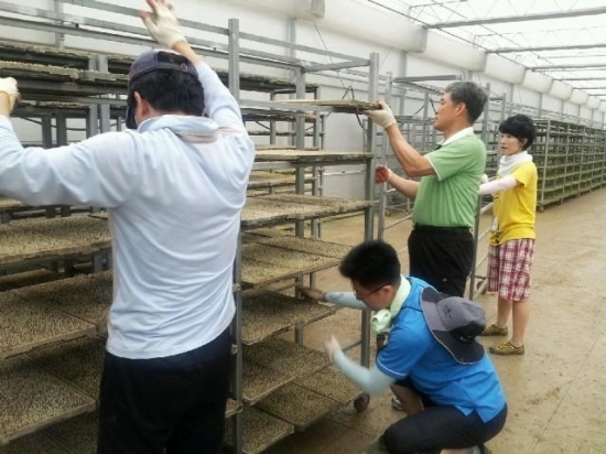 전북농협 봉사단은 이번달 벼 공동육묘장에 집중적인 인력지원을 하여 적기에 농가에 모판 공급돼 영농에 지장이 없도록 최선을 다하고 있다.