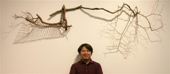 오는 23일까지 전주교동아트미술관에서 열리는 '나무도, 나도' 展에 걸린 설치 작품은 그의 미소처럼 자연을 닮은 순박함을 간직하고 있었다.