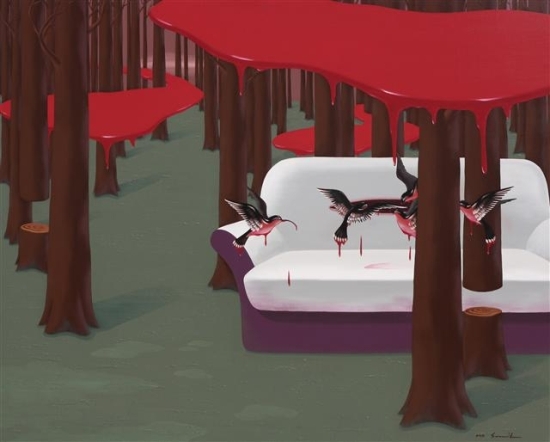 그는 근작에서 좀 더 단순하고 정리된 느낌의 새로운 소재와 강력한 색채를 사용해 전보다 더욱 분명하게 그의 내면을 드러내고 있다. 계단과 집, 테이블, 옷장, 의자, 붕대 감은 나무와 소파, 새, 마네킹, 천을 뒤집어쓴 여인 등 다양한 소재가 복합적으로 작품 안에서 어우러진 것. 과거에는 이야기를 그저 전달했던 것에 천착했다면 근작은 주제에 관한 설명 대신 더 또렷해진 이미지로 발길을 붙든다.