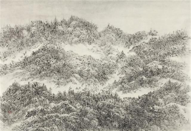 이런 철학을 표현해야 했던 그는 한지와 수묵 작업에 천착할 수밖에 없었다. 먹의 검은색은 색이 없는 듯 하면서도 헤아릴 수 없이 많은 층위를 갖고 있는 오묘한 색이기 때문이다. 그는 어쩌면 먹의 오묘한 이치에 매료돼 다른 색을 거들떠보지 않았을지도 모른다.