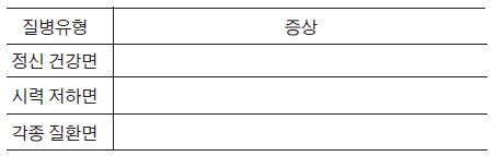 △ 스마트폰 중독으로 학생들의 건강에 빨간불이 켜지고 있다고 한다. 스마트폰을 과다 사용할 때 생길 수 있는 질병의 증상은 무엇인가?
