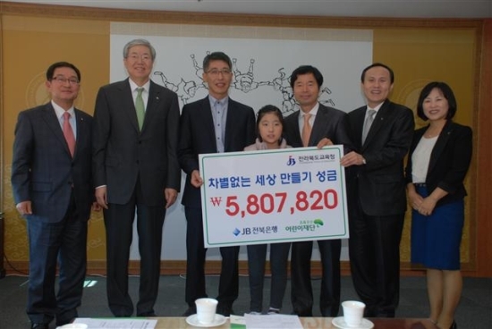 이날 전달된 성금은 지난달 3~6일까지 JB전북은행에서 열린 어린이뮤지컬 '슈퍼맨처럼'의 입장료와 공연장을 찾은 시민들이 모금한 금액으로 어린이재단을 통해 장애아동 후원에 사용될 예정이다.