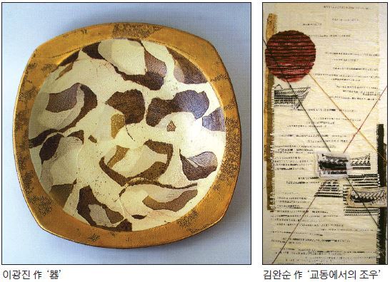 라피스 라줄리(Lapis Lazuli, 청금석) 본연의 줄무늬를 살린 이동주의 ‘흔적’, 인물의 좌우를 바꾼 두 개의 사진을 한 면에 동시에 담은 송수미의 ‘나눌 수 있는 호흡’, 재료의 특성을 살린 이병로의 ‘백자달항아리’ 등 각자 자신만의 도구로 세상을 담았다. 한지와 실크스크린을 결합한 김완순의 ‘교동에서의 조우’, 식물섬유와 고서·마닐라삼 등으로 공간을 분할하고 이은 유봉희 ‘나·너·우리-나도 꽃이다’ 등이 전시됐다.