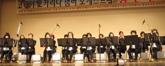 코리아 오카리나 챔버 오케스트라는 전북대 평생교육원에서 1년 이상 기초반과 심화반을 이수한 뒤 한국오카리나 교육협회에서 주관하는 연주자 과정을 취득한 단원으로 구성됐다. 기존 오케스트라의 형태를 갖춰 대규모 연주를 특징으로 하고 있다. 지난 2009년 2월 발족한 이후 전주세계소리축제 프린지 무대에 섰으며 충남 홍성·천안 등에서 초청 공연을 했다.
