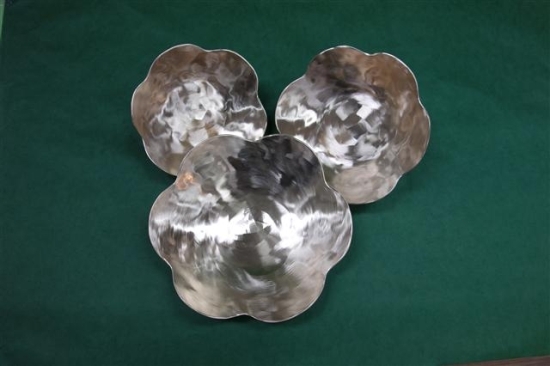 모두 100여점을 2~3개씩 묶어 하나의 작품으로 구성했다. 꽃이 핀 모양의 아기 미소 ‘아소’, 둥글둥글 아이의 손을 본딴 ‘아손’, 아몬드같은 아이의 눈 ‘아눈’ 등 방짜유기의 다양한 변형과 창작성을 엿볼 수 있다.