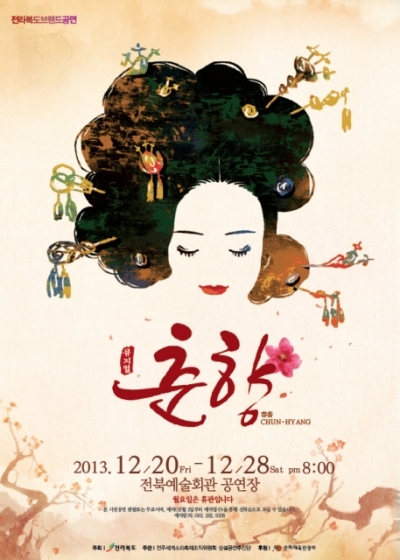 2013 전북브랜드공연 국악뮤지컬 ‘춘향’이 전북도 주최, 전주소리축제조직위 상설공연추진단 주관으로 오는 20일부터 28일까지 월요일을 제외한 매일 오후 8시 전주시 경원동 전북예술회관에서 시연된다. 이 작품은 문화체육관광부 지원 5억 원과 도비 2억 원 등 모두 7억 원으로 제작됐다. 문광부가 전통문화자원을 현대화해 세계적 공연관광상품으로 개발하기 위한 사업이다.