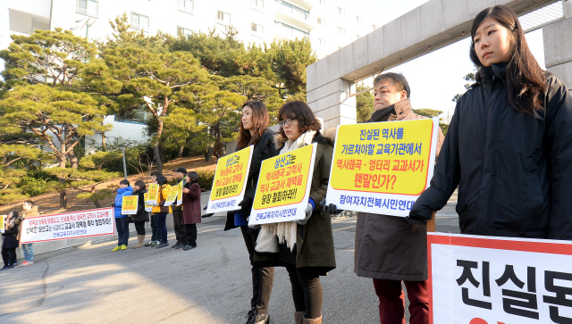 광복회 전북지부는 이날 회견을 열고 “교학사 교과서가 친일을 찬양하고 있는 사실은 너무도 자명하다”며 “이런 왜곡된 교과서로는 오직 친일기회주의만을 가르쳐, 학생들에게 그릇된 역사관을 심어줄 수 있다”고 지적했다.