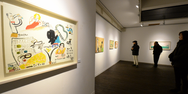 김정희(57)씨도 “화가가 나이가 들었는데도 아이 그림같은 순수함이 있고, 전체적으로 상큼한 기운이 느껴진다”면서 “소재도 다양하고 기법도 틀에 박히지 않아 입체적이다”고 말했다. 그는 이어 “‘연당설화’라는 그림은 지상에서 가장 평화로운 모습을 그려 눈길을 떼지 못했다”고 덧붙였다.