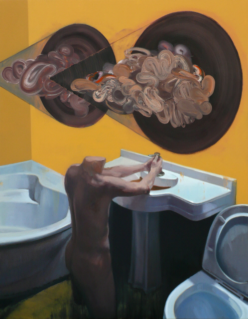 세면대 앞의 몸은 수도꼭지를 부여잡고 있다. 얼굴이 없는 몸은 그저 물성으로만 존재한다. 화장실이라는 가장 개인주의적인 공간에서 역설적이게도 그림 속의 몸은 정체성의 부재를 표현했다. 김상덕 작가는 ‘no506-S’라는 제목도, 그림도 기괴한 작품으로 관람객에게 실존을 묻는다.