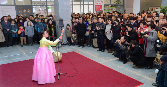 이날 안 명창이 내뿜는 시원한 소리는 겨울날의 한기를 깨기에 충분했다. 그의 노래가 시작되자 로비를 가득 메운 관람객은 발꿈치를 들고 고개를 세우며 안 명창의 목소리에 귀를 기울였다. “어서 남원으로 가 보세”라는 명창의 고고한 소리에 관객은 자연스럽게 “얼씨구”와 “좋다”를 연발했다.