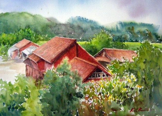 ‘파 밭을 가꾸는 집’‘백운의 여름’‘내동산 가는 길’‘손내마을의 여름’‘물레방아마을의 추억’. 작품 제목이 말해주듯, 주변에서 접할 수 잇는 풍경들을 정감있게 표현한 작품들이다. 여기에 펜으로 그린 여행스케치 작품들을 합쳐 20여점의 작품들을 만날 수 있다.