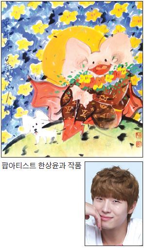 ‘돼지작가’로 불리우는 한 씨는 수묵화에 만화를 접목해 물질 만능주의를 풍자했다. 친숙한 동물인 돼지에 명품 상표가 새겨진 옷을 입히고 꽃다발을 걸어 젊은층의 물질적 욕망과 이에 따른 사치품 선호 현상을 꼬집었다.