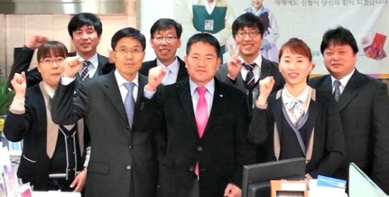 ▲ 지난 1980년 창립한 이래 지역 밀착형 신협으로 거듭나면서 2013년 경영성과 평가에서 최우수상을 수상한 무주 신안성신협 직원들이 파이팅을 외치고 있다.
