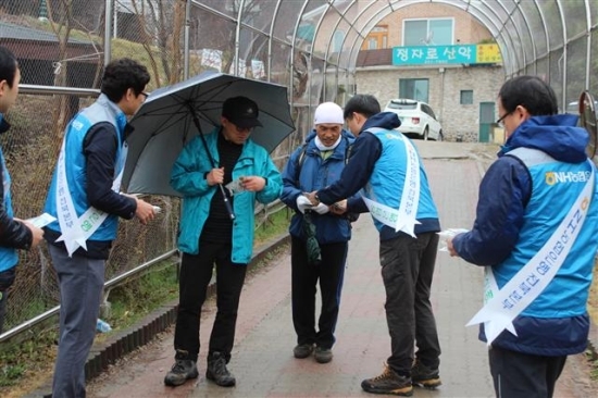 봄비가 촉촉히 내린 가운데 실시된 봉사활동에서 농협은행 임직원들은 이날 2개조로 나뉘어 중인리 및 구이 등산로 입구에서 사랑의 꽃씨를 배부하고 등산로 일부에서 휴지줍기 등 자연보호 활동을 펼쳤다. 박태석 본부장은 “농협은행은 지역민의 일원으로서 도민들과 스킨십을 강화하고 봉사활동을 확대하는 등 사회공헌활동을 적극적으로 펼쳐나갈 계획”이라며 “도움이 필요한 곳에 손길을 보태기 위해 최선을 다하겠다”고 밝혔다.